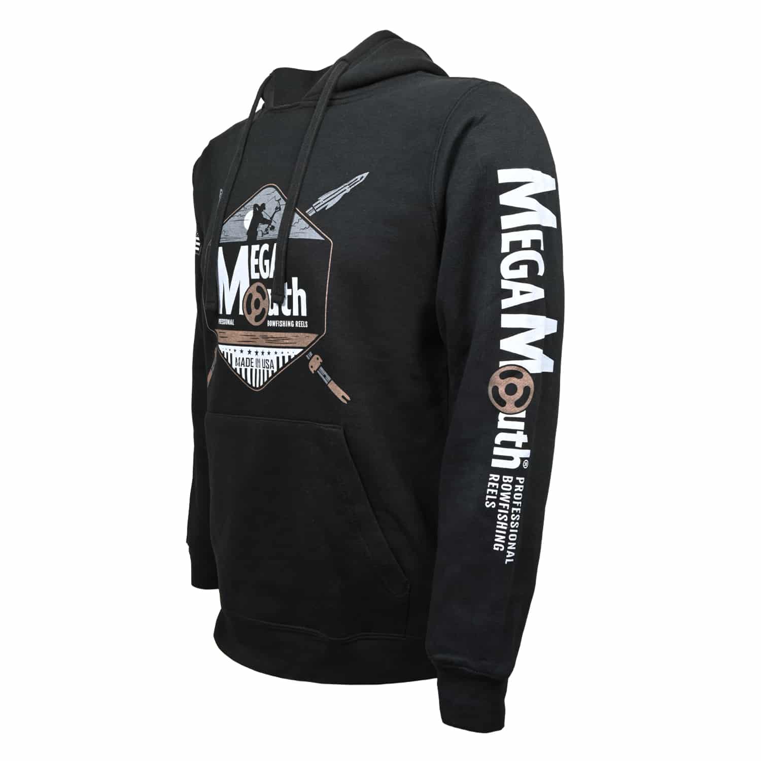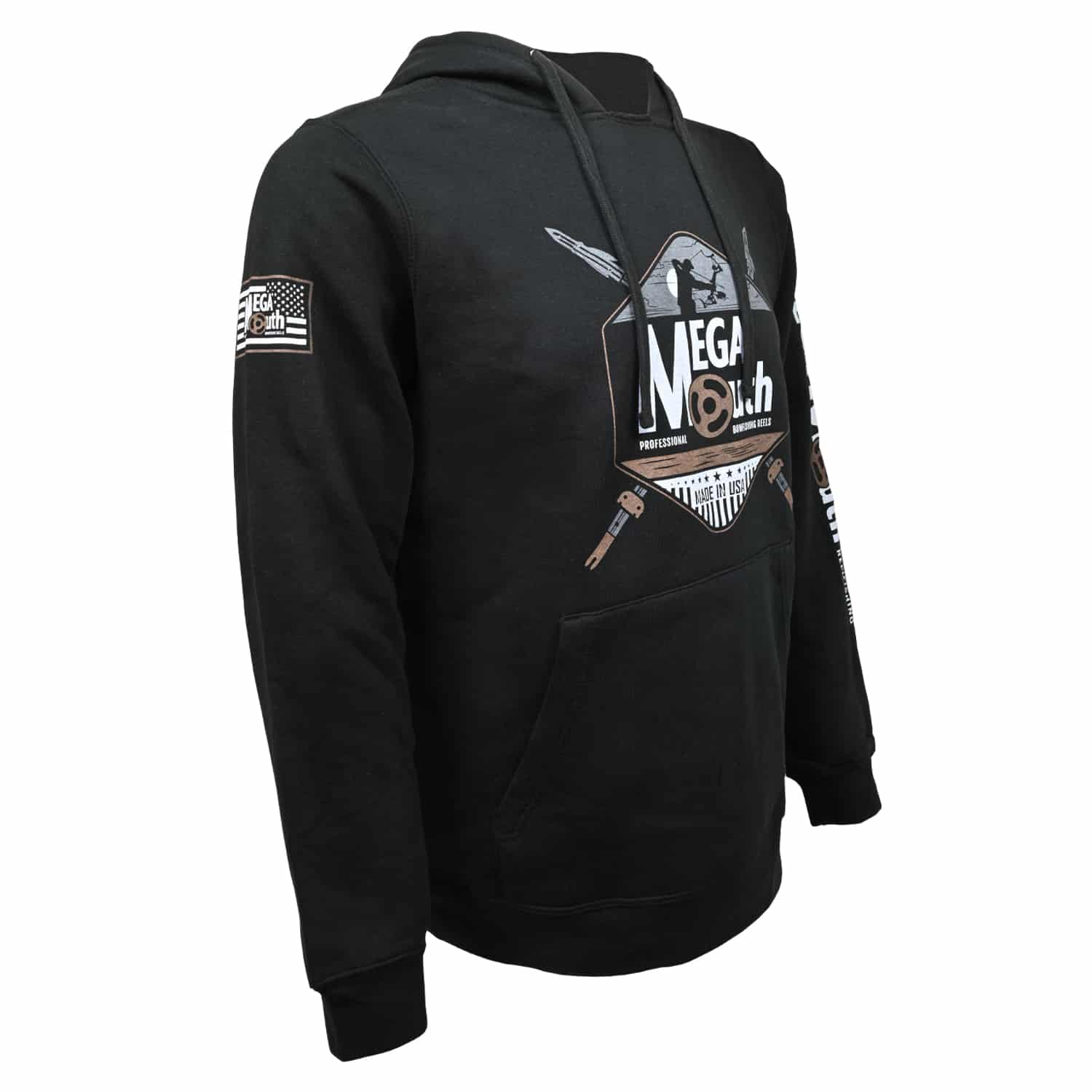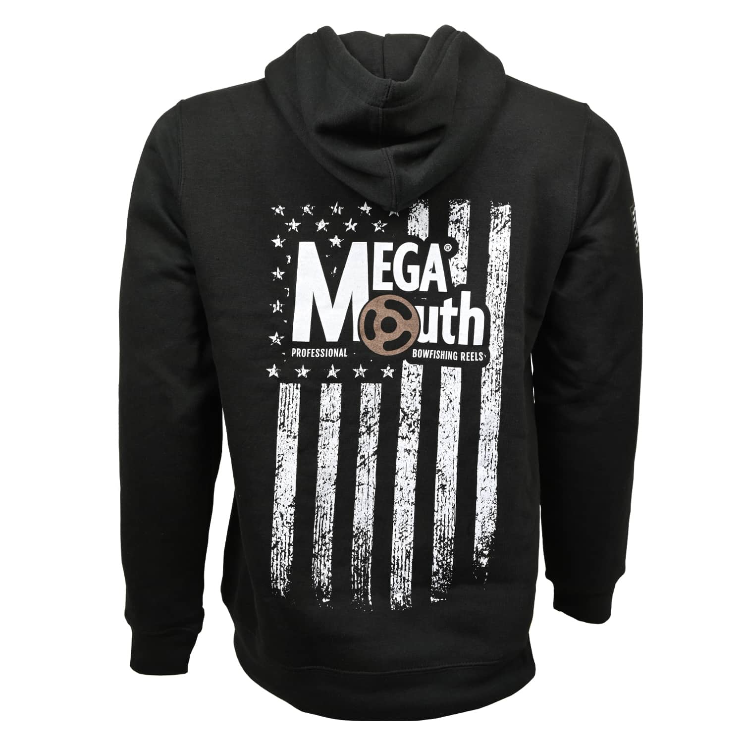 We LOVE comfortable, durable apparel at MegaMouth®! That’s why we chose top-of-the-line Pennant Brand Hoodies as the base! Printed in 4 places, emblem on front, flag on back and right sleeve, and the MegaMouth® logo running down the left sleeve you’ll show your support for American Made MegaMouth® gear. This tough hoodie is a 10 oz. blend of 60/40 cotton/poly. It will not disappoint.