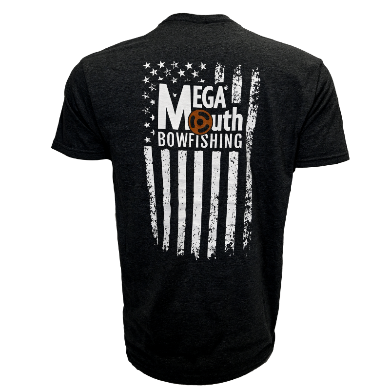 Rep the MegaMouth lifestyle with one of our Signature Series T-Shirts. Not all t-shirts are created equal, and this is a prime example. Whether you’re wearing it out in public, or have it on while shooting fish on the water, this T-shirt guarantees you will have supreme comfort because of it’s quality material blend. With the iconic all white MegaMouth logo on the front left chest and big vertical MegaMouth flag on the back, this shirt will inspire the bowfisherman in all of us.