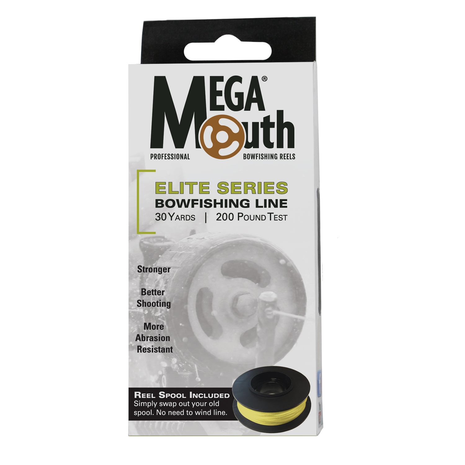 For Original MegaMouth® reels:  Always make sure to have plenty of extra line in the boat so that your next bowfishing adventure doesn’t stop short. This line is already wound on the custom line spool for original MegaMouth® reels. Simply swap out your old spool, reassemble and you’re ready to keep shooting fish. This will not work with the v2.0 MegaMouth® reels.